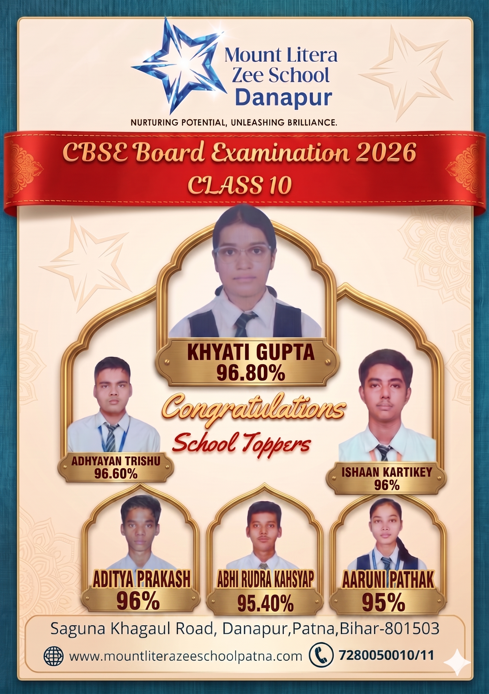 We welcome you to explore Mount Litera Zee School, Danapur, and witness how we are shaping bright, capable, and future-ready individuals. Together, “let us build the foundation for a promising tomorrow nurturing potential,unleashing brilliance“