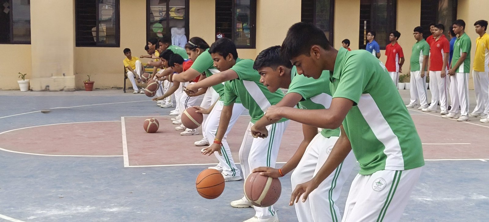 The School has good sports facilities, which include indoor and outdoor basketball courts, table tennis facilities and a multipurpose ground. Opportunities for team games and physical training are facilitated by trained physical instructors and yoga teachers. Students practice yoga and pursue sports like table tennis, volleyball, basketball, badminton, throw ball, squash, and athletics. They also enjoy board games like carrom and chess. The annual sports meet is held to celebrate the spirit of sportsmanship.